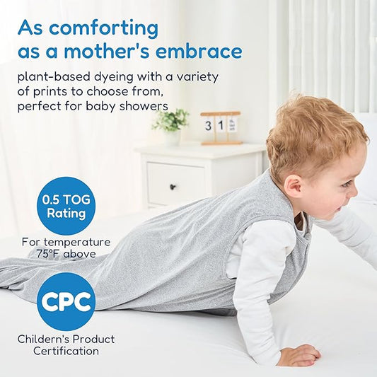 Rayon Made From Bamboo Sleep Sack 6-12 Months 0.5 Tog Ultra Soft Summer Toddler Sleep Sack with Feet 2-Way Zipper Lightweight Baby Sleeping Bag with Legs Thin Baby Wearable Blanket-Gray