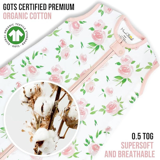 Mama Cheetah Baby Sleep Sack 0.5 TOG, Organic Cotton Baby Wearable Blanket with Two-Way Zipper, Swaddle Transition Baby Sleeping Bag for Newborn Infant Toddler Boy Girl, 0-6 Months