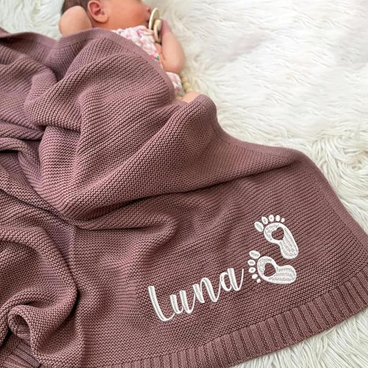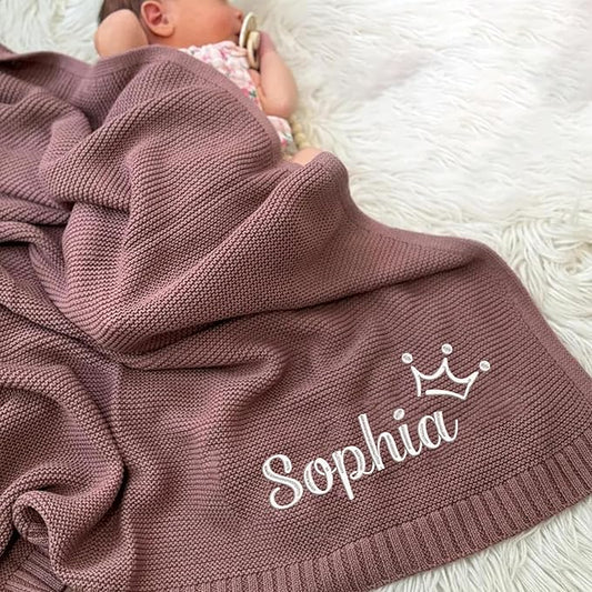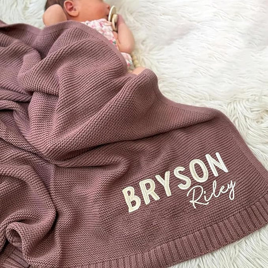 Personalized Baby Blanket - Custom Knit with Embroidery, Monogrammed Baby Name Blanket | Perfect for Baby Showers, Stroller & Car Seat | Gift Idea