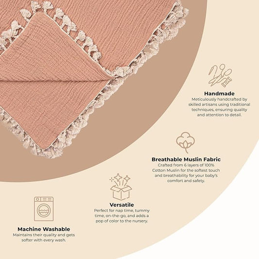 Crane Baby 6-Layer Quilt Muslin Swaddle Blanket, Soft Cotton Lightweight Nursery and Stroller Blanket for Baby Boys & Girls, Copper, 30 X 40