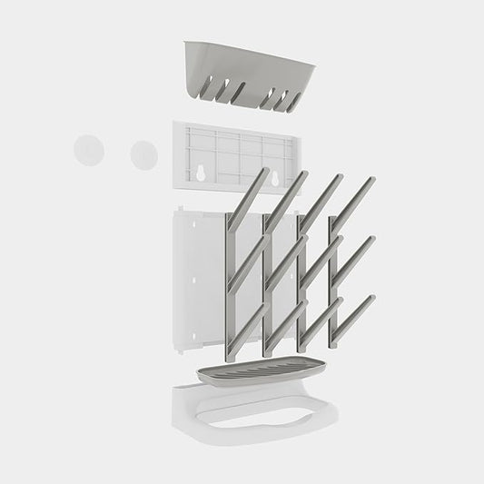 haakaa Baby Bottle Drying Rack, Space Saving Bottle Drying Tree for Bottles/Pump Parts/Pacifiers and Other Baby Essentials, Easy-Store Dryer Rack Great for Home & Travel, BPA Free (Slate Grey)