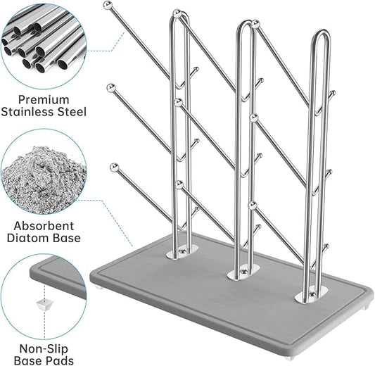 NiHome Diatomaceous Earth Vertical Baby Bottle Drying Rack, Compact Countertop Organizer for Bottles