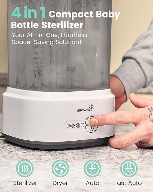 GROWNSY Bottle Sterilizer and Dryer, Compact Electric Steam Baby Bottle Sterilizer (Esterilizador de Biberones), Bottle Sanitizer for Baby Bottles, Pacifiers, Pump Parts
