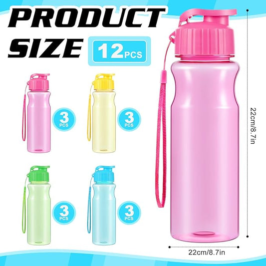 Olgaa 12 Pack Water Bottles Bulk 17 oz End of the Year Gifts for Students Kids from Teacher Reusable Leak Portable Plastic Sports Summer Drink Water Bottles with Handle Strap for Cycling Camping