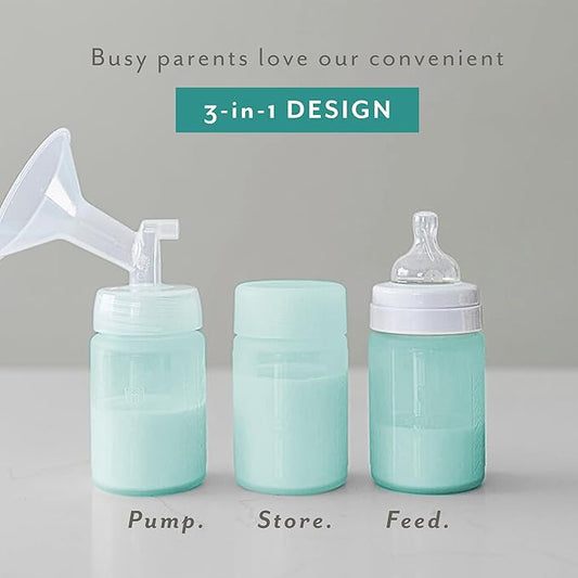 Mila's Keeper Premium Silicone Breast Milk Storage Bottles, for Pumping, Storing and Feeding, Fits Leading Pumps and Nipples, 6 oz Silicone Milk Storage Containers, Wide Neck Ocean Mist, Set of 3