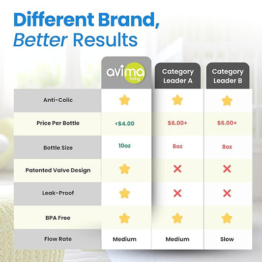 Avima 10 oz Anti Colic Baby Bottle Set - Medium Flow Nipples Included, Standard Neck, BPA Free - 3-6 Months, Stage 2 Feeding for Gas, Spit Up & Colic (Set of 8)