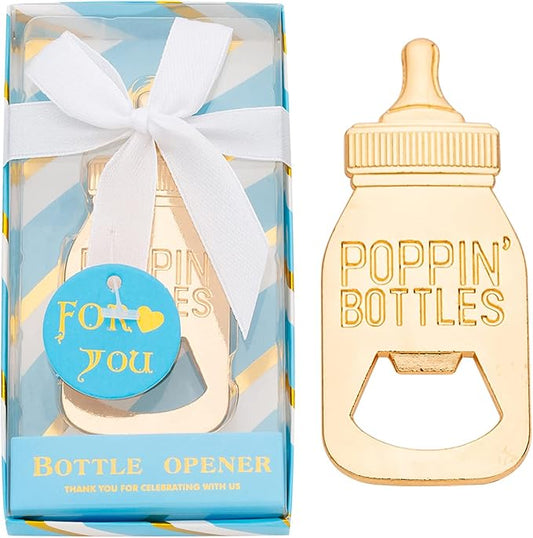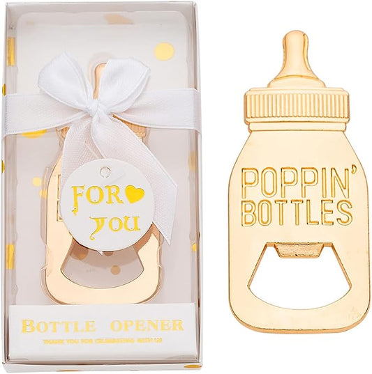 24 Pieces Baby Bottle Openers Baby Shower Favors, Gifts, Decorations, or Souvenir Guest Gift Boxes, Poppin Design for Boys or Girls (24 Pack White)