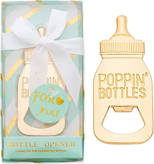 24 Pieces Baby Bottle Openers Shower Favoris, Gifts, Decorations, or Souvenir Guest Gift Boxes, Poppin Design for Baby Boys or Girls (24 Pack Green)