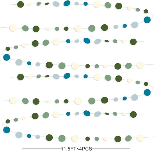 Sage Green and Dusty Blue Party Decorations Polka Dots Garlands Hanging Paper Circle Dots Streamer for Men Boy Birthday Baby Shower Wedding Engagement Retirement Silly Goose Party Decorations Supplies