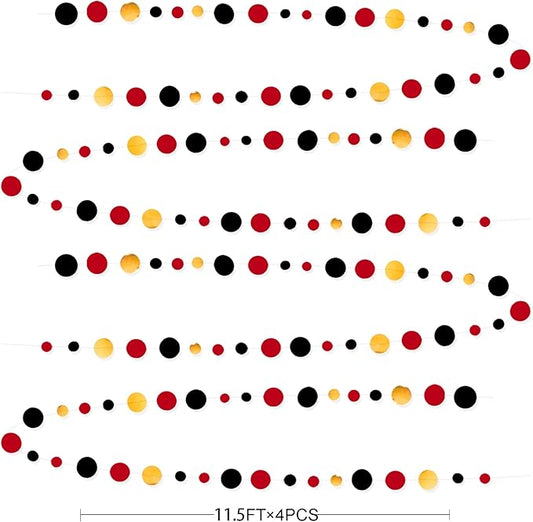 Gold Black Red Party Decorations Circle Dots Streamer Hanging Paper Polka Dots Garland for Graduation Birthday Wedding Anniversary Baby Shower Holiday Pirate Poker Casino Las Vegas Party Supplies