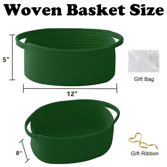 Gift Basket with Gift Bag and Ribbons,Small Rope Woven Shelf Storage,Baskets for Gifts Empty,Birthday,Shower,Decorative Organizer Box for Cat Dog Pet with Handles(Green)