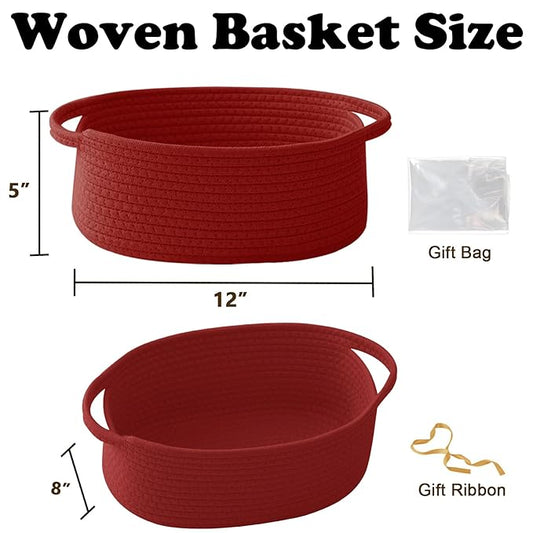 Gift Basket with Gift Bag and Ribbons,Small Rope Woven Shelf Storage,Baskets for Gifts Empty,Birthday,Shower,Decorative Organizer Box for Cat Dog Pet with Handles(Red)