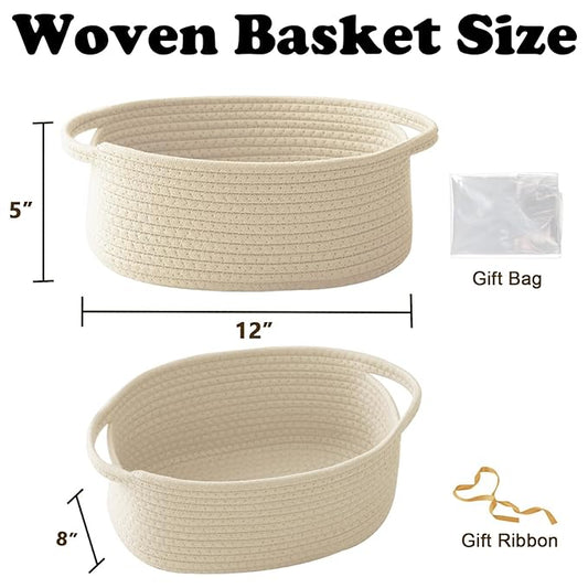 Gift Basket with Gift Bag and Ribbons,Small Rope Woven Shelf Storage,Baskets for Gifts Empty,Birthday,Shower,Decorative Organizer Box for Cat Dog Pet with Handles(Cream)