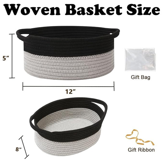 Gift Basket with Gift Bag and Ribbons,Small Rope Woven Shelf Storage,Baskets for Gifts Empty,Birthday,Shower,Decorative Organizer Box for Cat Dog Pet with Handles(Black&Grey)