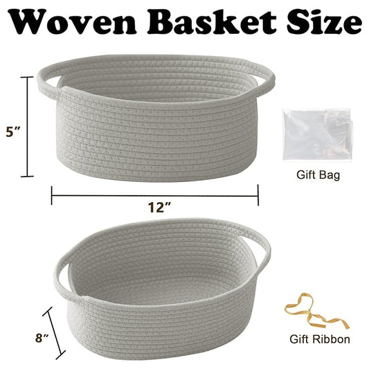 Gift Basket with Gift Bag and Ribbons,Small Rope Woven Shelf Storage,Baskets for Gifts Empty,Birthday,Shower,Decorative Organizer Box for Cat Dog Pet with Handles(Grey)