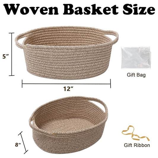 Gift Basket with Gift Bag and Ribbons,Small Rope Woven Shelf Storage,Baskets for Gifts Empty,Birthday,Shower,Decorative Organizer Box for Cat Dog Pet with Handles(Mixed Brown)