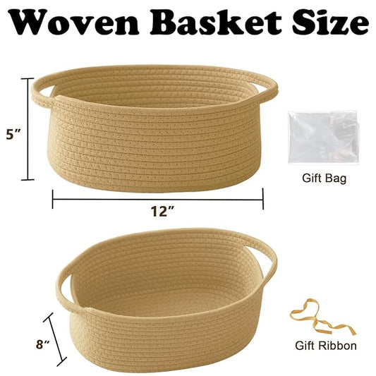 Gift Basket with Gift Bag and Ribbons,Small Rope Woven Shelf Storage,Baskets for Gifts Empty,Birthday,Shower,Decorative Organizer Box for Cat Dog Pet with Handles(Yellow)