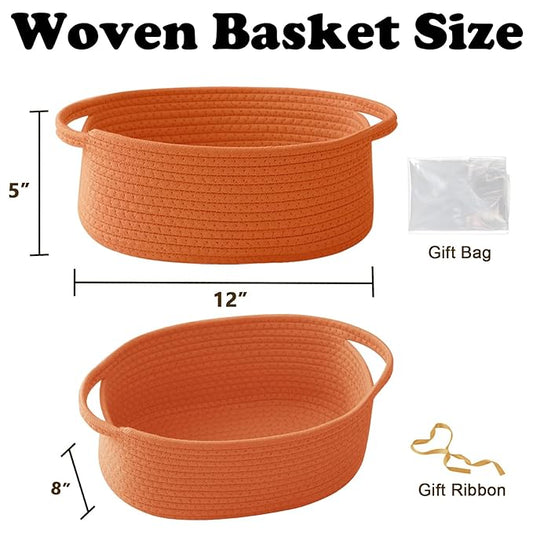 Gift Basket with Gift Bag and Ribbons,Small Rope Woven Shelf Storage,Baskets for Gifts Empty,Birthday,Shower,Decorative Organizer Box for Cat Dog Pet with Handles(Orange)