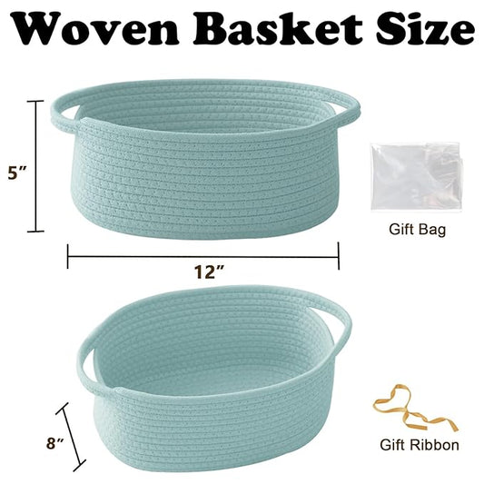 Gift Basket with Gift Bag and Ribbons,Small Rope Woven Shelf Storage,Baskets for Gifts Empty,Birthday,Shower,Decorative Organizer Box for Cat Dog Pet with Handles(Aqua)