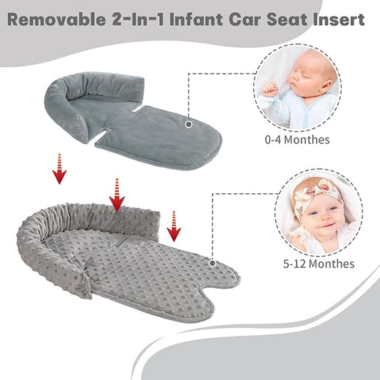 Infant Car Seat Insert, 2 in 1 Reversible Baby Car Seat Head & Body Support Cushion Pillow for Newborn,Soft Newborn Carseat Head Support Pad for Carseats, Strollers, Swings, Bouncers
