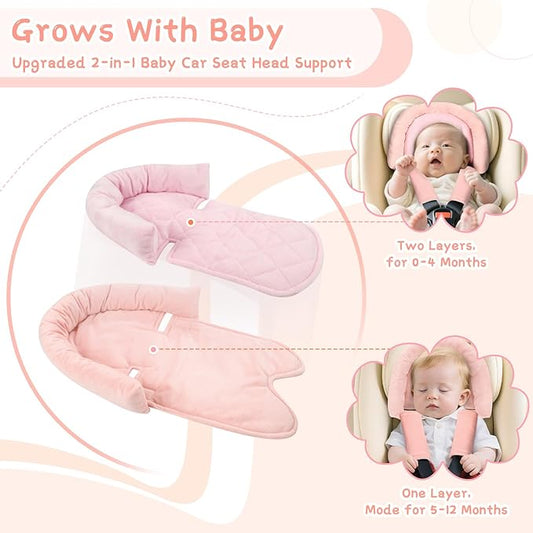 Baby Head Support and Strap Covers - Infant Head Support Pillow Super Soft Head and Neck Cushion for Car Seat Baby Headrest and Carseat Neck Cover,Light Pink