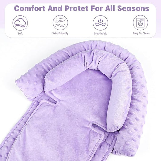 Baby Infant Head and Neck Support Pillow with Seat Belt for Car Seat -Extra Soft 3-in-1 Toddler Car Seat Insert Cushion Pad for Car Seats Purple