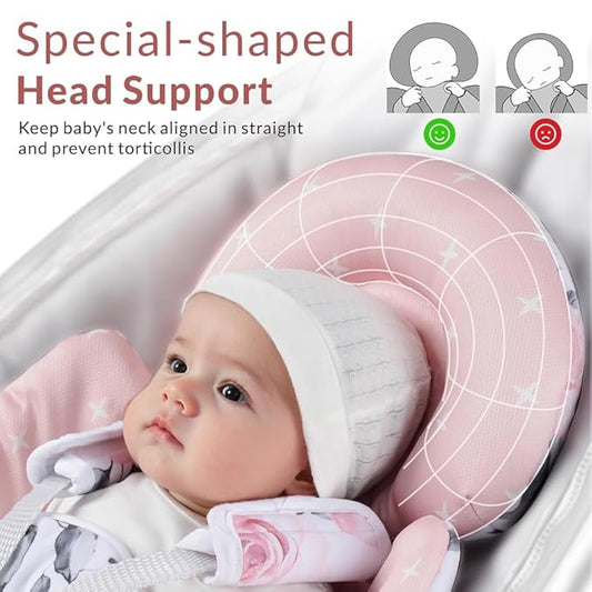 Infant Car Seat Insert for Girls Boys, Ultra Soft Carseat Head Support for Infant, Breathable Baby Car Seat Cushion with Double Side Design, Baby Car Seat Head Support for Stroller, Swing, Bouncer