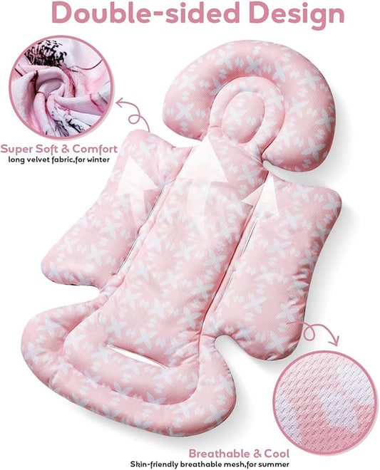 Infant Car Seat Insert with Removable Cushion for Baby Preemie Newborn Infant, Reversible carseat Insert Head Body Support Fits for Stroller, Baby Swing, Rocker, Bouncer, Bassinet - Pink