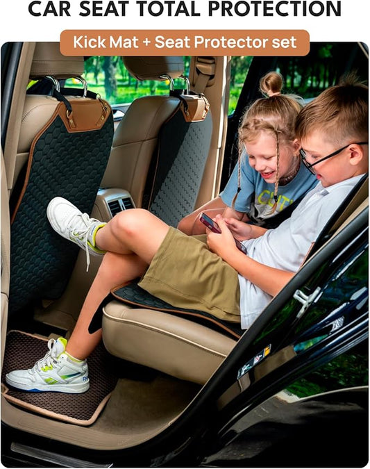 Car Seat Protector Set - Black, Waterproof & Non-Slip, Kick Mat & Back Seat Protection