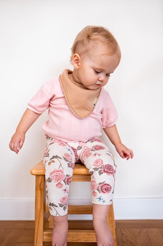 mushie Silicone Baby Bib | Adjustable Fit Waterproof Bibs (Pink Flowers)