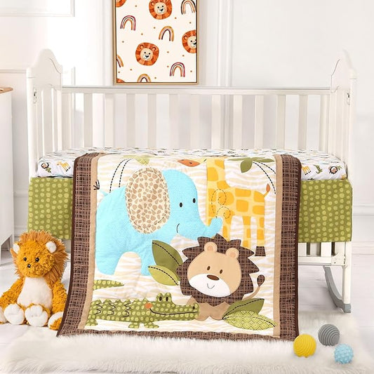 Wowelife Safari Crib Bedding Set, 3 Piece Safari Baby Bedding Set Brown, Premium Baby Crib Bed Set, Breathable and Soft for Baby Boy and Girl