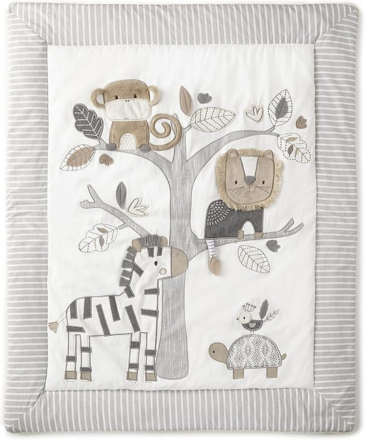 Levtex Baby - Kenya Baby Bed Set - Grey and Taupe - Jungle Animal - 5 Piece Set Includes Reversible Quilt, Fitted Sheet, Dust Ruffle, Hamper, Wall Decals
