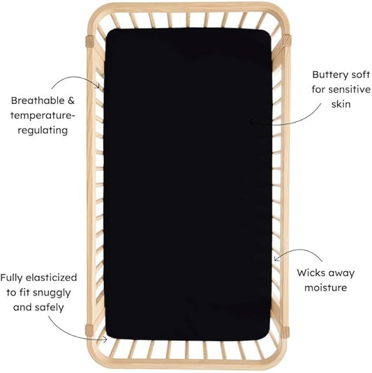 Kyte Baby Soft Crib Sheet - Standard Fitted Crib Sheet Made with Rayon from Bamboo, Ultra-Gentle and Breathable (Midnight)