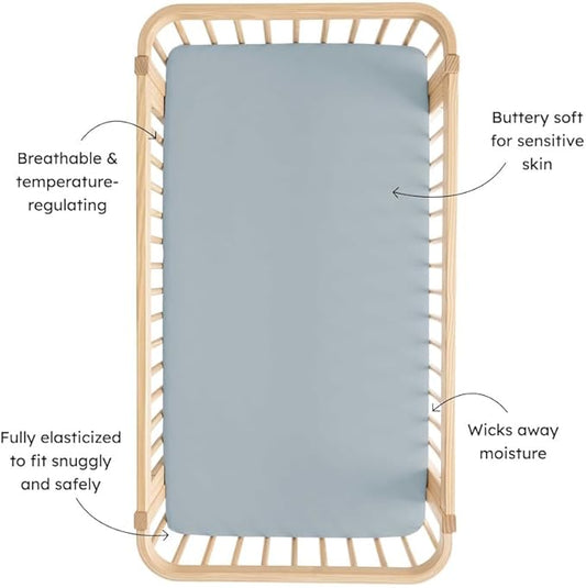 Kyte Baby Soft Crib Sheet - Standard Fitted Crib Sheet Made with Rayon from Bamboo, Ultra-Gentle and Breathable (Storm)