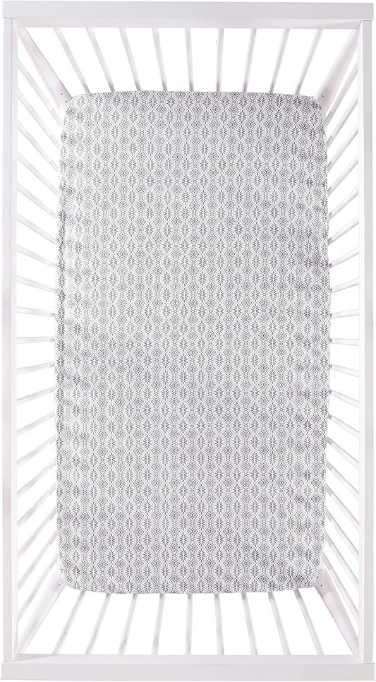 Levtex Baby - Kenya Crib Fitted Sheet - Fits Standard Crib and Toddler Mattress - Geometric Leaf Design - Grey and Taupe - Nursery Accessories - 100% Cotton