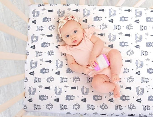 4 Pack Woodland Forest Animals Wood Neutral Unisex Fitted Baby Crib Sheets Set for Baby Boys or Girls Black and White