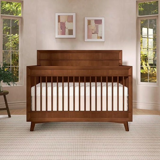Evolur Loft Antilia Mid-Century 4-in-1 Crib in Walnut, Greenguard Gold & JPMA Certified, Baby Crib Converts to Toddler Bed, Daybed & Full Bed