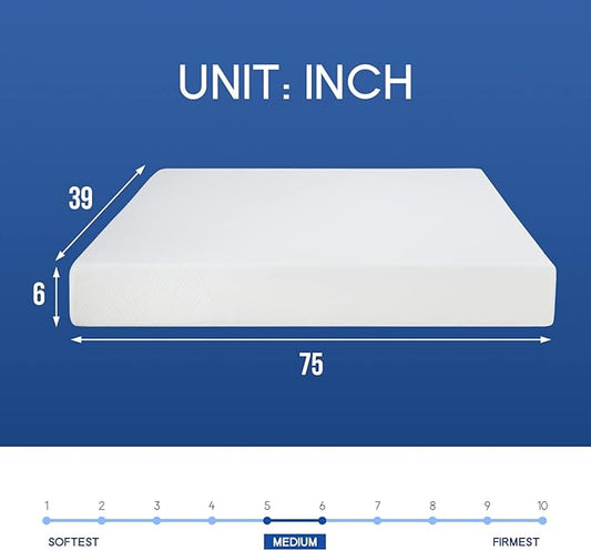 FDW | 6 Inch Twin Mattress | Medium Firm | Gel Memory Foam Mattress | White | Bed in a Box, CertiPUR-US Certified | Pressure Relief, Cooling Ventilated Foam | Washable Removable Cover