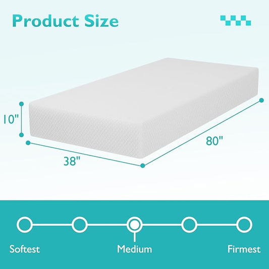 FDW | 10 Inch Twin XL Mattress | Medium Firm | Gel Memory Foam Mattress | White | Bed in a Box, CertiPUR-US Certified | Pressure Relief, Cooling Ventilated Foam | Washable Removable Cover