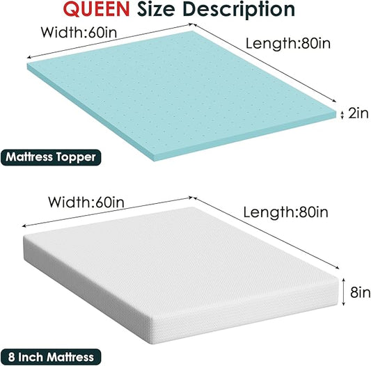 FDW | 8" Queen Mattress + 2" Cooling Mattress Topper | Gel Memory Foam | Medium Firm Feel | White | with Washable Cover for Cool Sleep and Pressure Relief | Bed in a Box, CertiPUR-US Certified