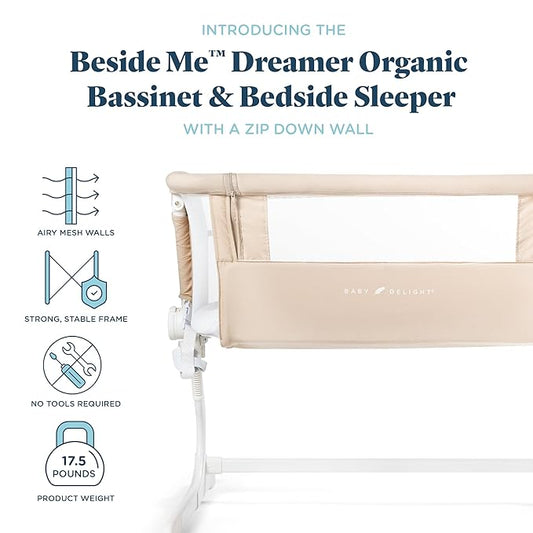 Baby Delight Beside Me Dreamer Bassinet | Bedside Sleeper & Baby Bassinet | 6-Position Height Adjustment | Organic Oat