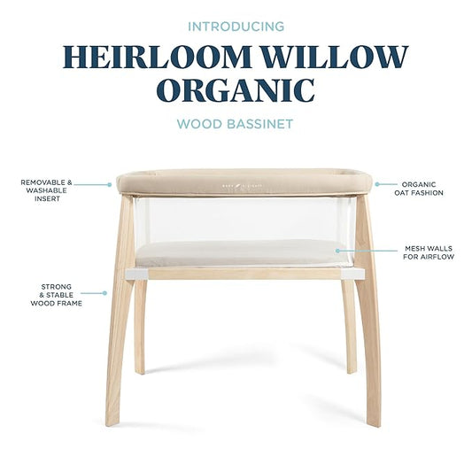 Baby Delight Heirloom Willow Wooden Bassinet | Bedside Sleeper & Baby Bassinet | 100% GOTS Certified Organic Cotton Fabric | Organic Oat