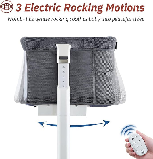 Electric Rocking Bassinet for Baby, Automatic Bedside Sleeper Electric Baby Cradle for Infant Newborn with Wheels, Smart Auto Rocking Crib 3 in 1 Bassinet 5 Heights Adjustable, Light Grey