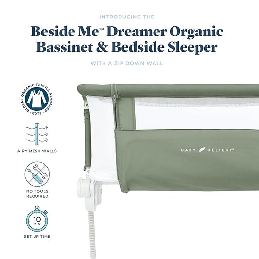 Baby Delight Beside Me Dreamer Bassinet | Bedside Sleeper & Baby Bassinet | 6-Position Height Adjustment | 100% GOTS Certified Organic Cotton Fabric | Organic Sage
