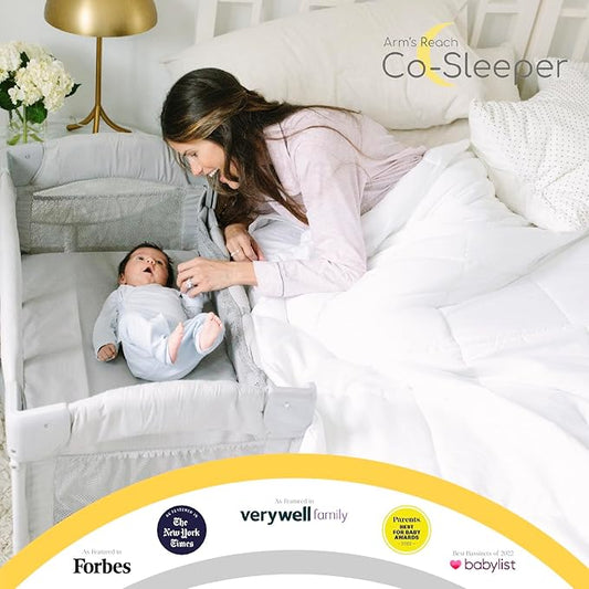 Arm’s Reach Mini Ezee 2 in 1 Co-Sleeper Bedside Bassinet with Mesh Side Panels, Side Pockets, and Bottom Storage, Gray