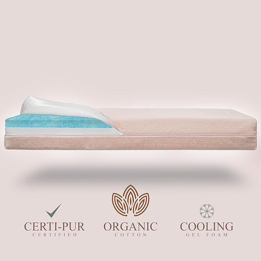 Organic Cotton Dual-Sided Crib Mattress | 2-Stage Premium Memory Foam CertiPUR-US Hypoallergenic Baby Mattress, Firm Support for Infant, Cooling Gel for Toddler, Waterproof Washable Cover, (Pink)