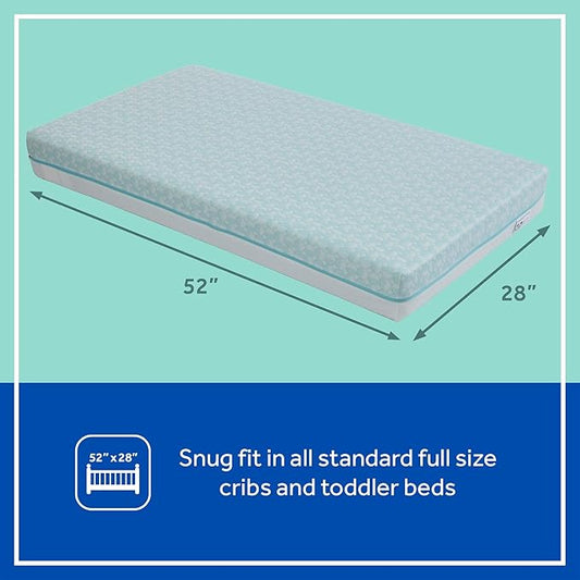 Sealy Baby Cozy Cool Hybrid Breathable Crib Mattress, GREENGUARD GOLD Certified, Made in USA, Cooling Foam, 2 Stage, Toddler Bed Fit, 204 Coils & Cotton Cover, Safety & Quality Tested, 52x28"
