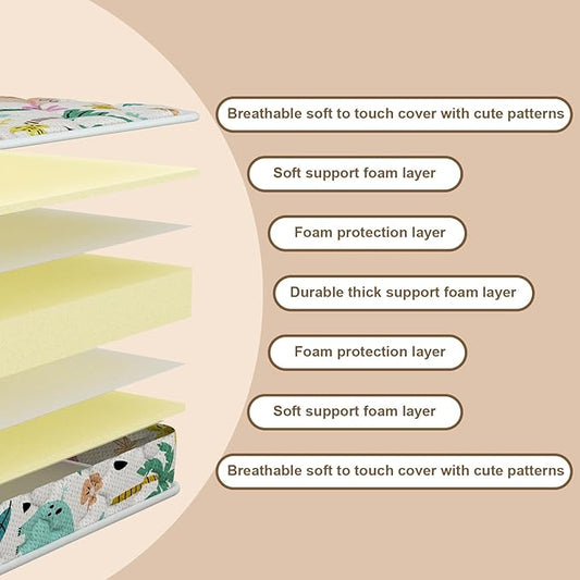 5" Crib & Toddler Mattress, 52x27.5 Breathable Knitted Fabric Cover, CertiPUR-US Certified Foam, Edge Reinforcement, Fits Standard Size Crib and Toddler Bed, Princess