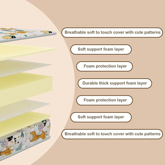 5" Crib & Toddler Mattress, 52x27.5 Breathable Knitted Fabric Cover, CertiPUR-US Certified Foam, Edge Reinforcement, Fits Standard Size Crib and Toddler Bed, Giraffe