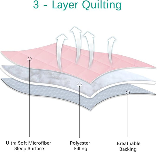 Crib Mattress Protector Waterproof Crib Sheets Fitted 2 Pack Toddler Mattress Pad Cover Improved Thickness Machine Washable 52" x 28" Pink Quilted